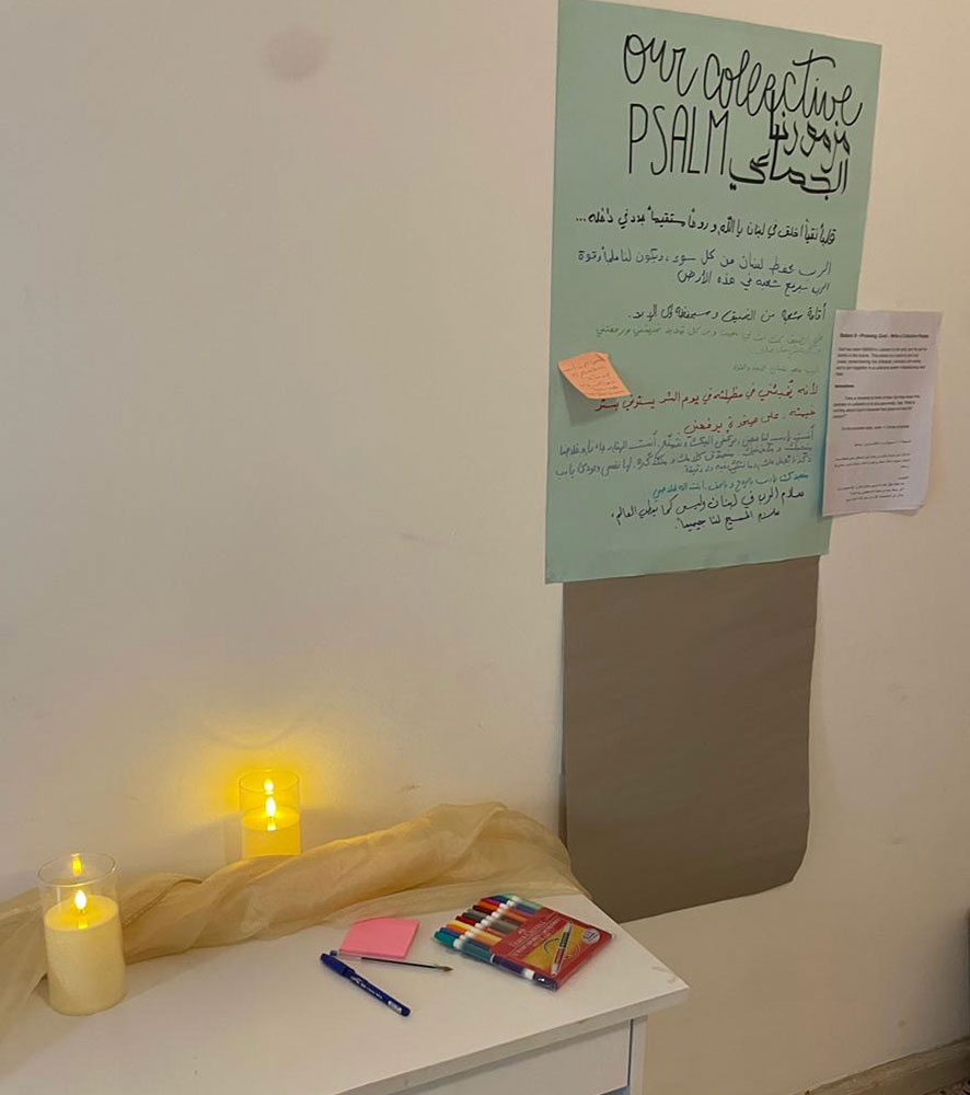 صُمِّمت محطّات هذه الغرفة من أجل أسبوع الصلاة العالمي في أيلول ٢٠٢٥. وقد نُفِّذت هذه المحطّات في أربعة أماكن تابعة لأربع جماعات مسيحيّة مختلفة، إضافةً إلى منصّة إلكترونية،، لتكون متاحة لأكبر عدد ممكن من الناس. وانضممنا في الصلاة إلى فرق من أكثر من ١٢٠ دولة حول العالم، وسعينا أن نصلّي لمدّة أسبوع كامل، طالبين من الله أن يتدخّل في بلداننا وأرضنا.